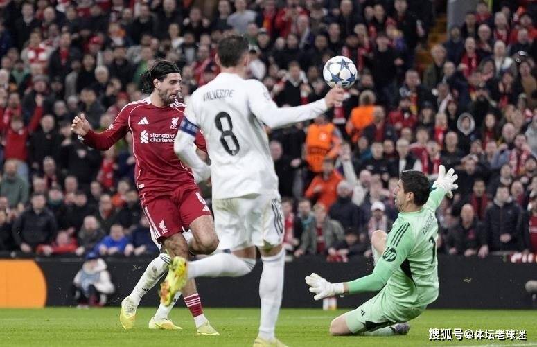 比赛从一开始就进入了利物浦熟悉的快节奏。上半场,利物浦中场索博斯洛伊便成为皇马防线的噩梦。他先是机敏包抄抢点,被库尔图瓦反应神速用脚挡出;随后又一脚势大力沉的远射,再次被这位比利时门神飞身化解。整个上半场,利物浦的进攻一浪高过一浪,而站在他们面前的,仿佛是一堵无法逾越的高墙。
